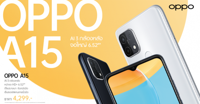 สมาร์ทโฟนน้องเล็กจากซีรีส์ A รุ่นใหม่ล่าสุด “OPPO A15” เอาใจสายถ่ายภาพและ เอนเตอร์เทนด้วย AI 3 กล้องหลัง และหน้าจอขนาดใหญ่ 6.52 นิ้ว ในราคาเพียง 4,299 บาท