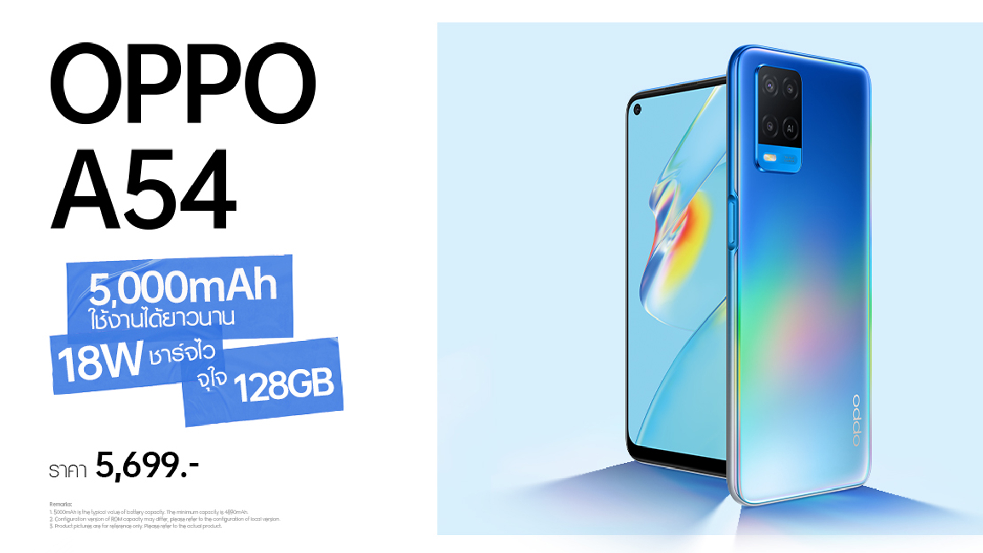 ข้อมูลผลิตภัณฑ์ OPPO A54 เพิ่มเติมที่ https://www.oppo.com/th/smartphones/series-a/a54/